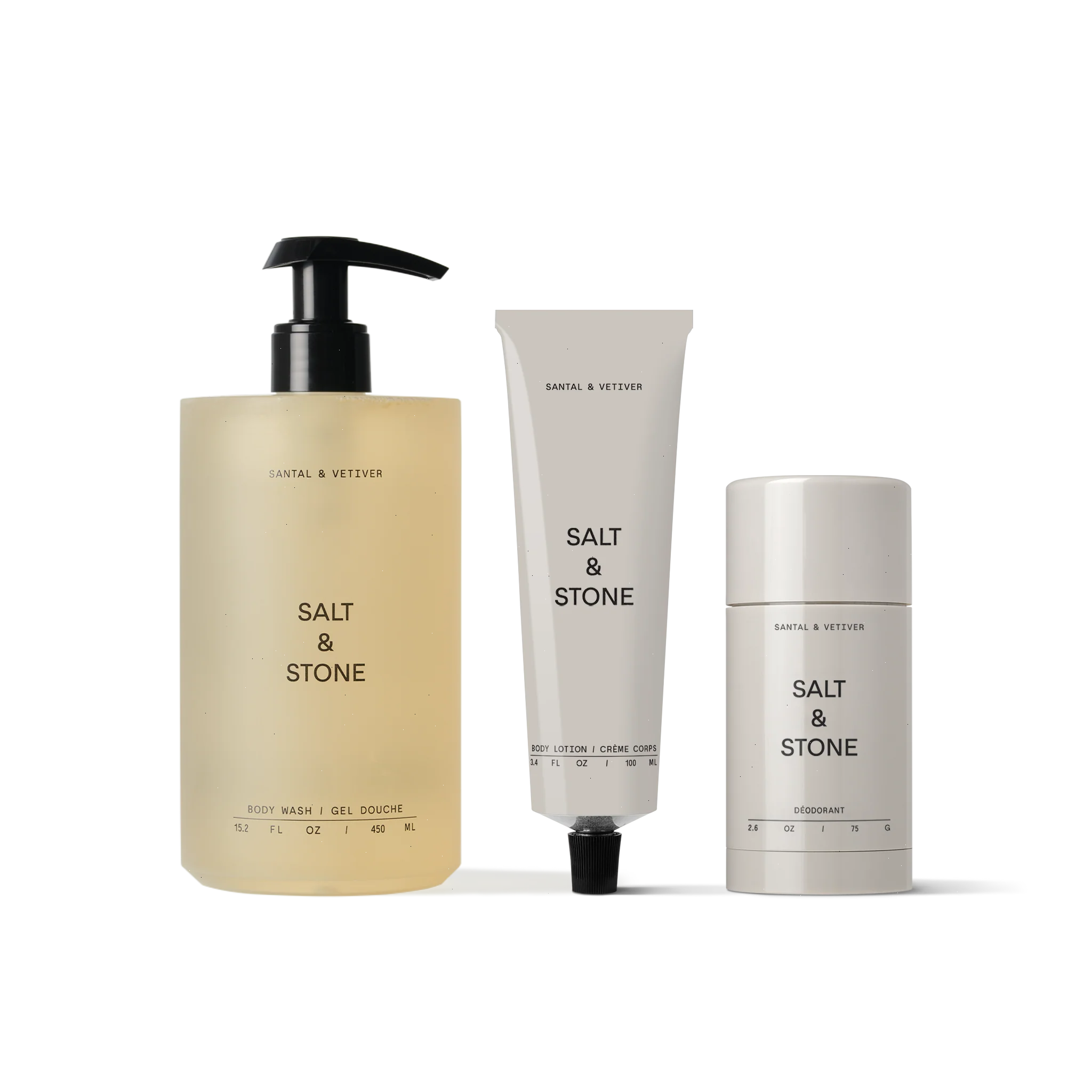 A trio of Santal essentials. Our Body Wash will rinse away the evening while soothing skin, pairing perfectly with an Extra Strength Deodorant to provide day-long protection. Deliver nourishing ingredients to the skin quickly with Body Lotion.